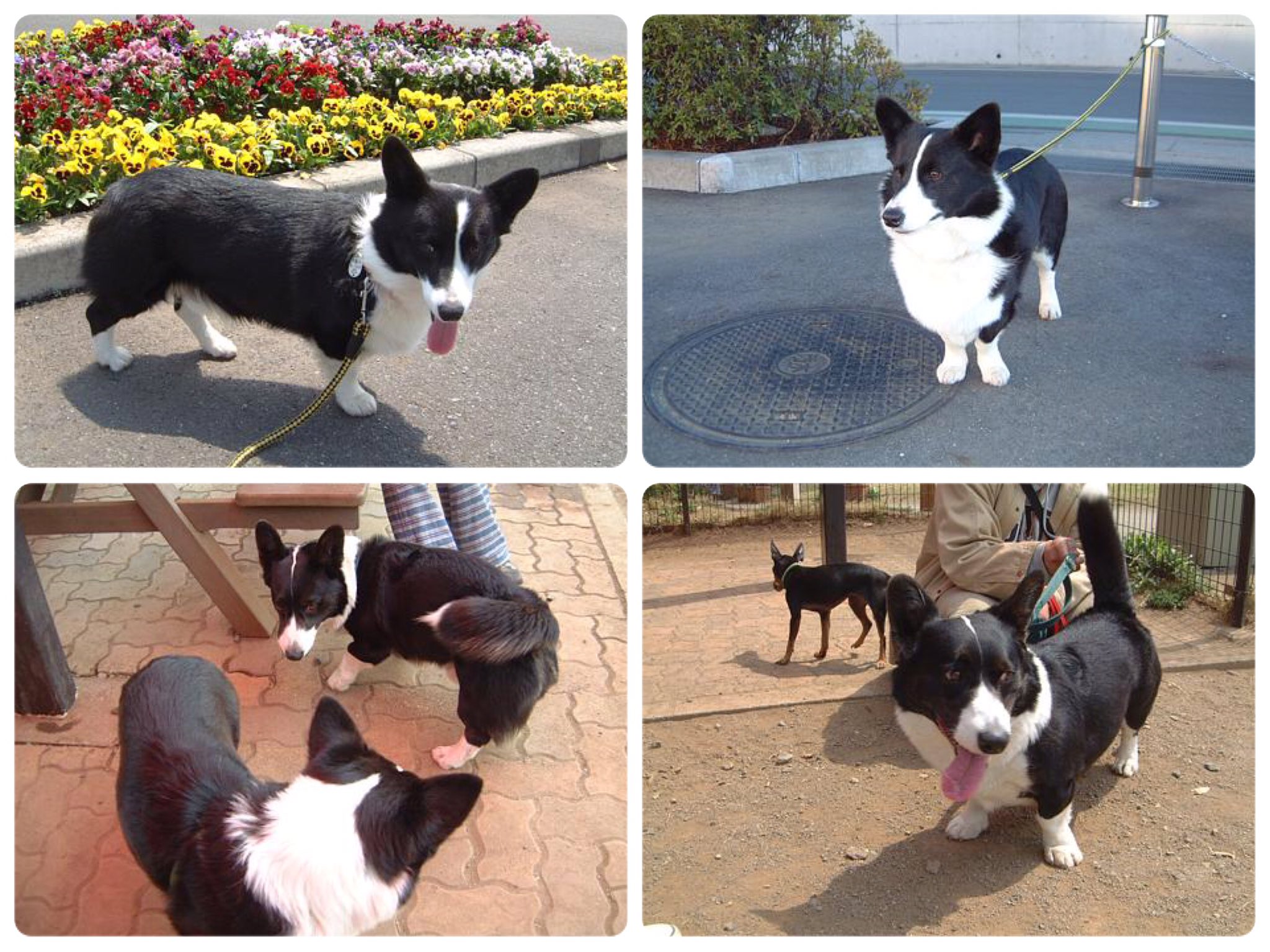 ルーク ペキコギまる Jinn Yi Kururukororo 上の2枚がわが家の先代コーギー 右下はドッグランで会った 白黒カーディガン 尻尾が立派です 左下は わが家のコーギーと尻尾ありカーディガン ちなみに 白黒コーギーは このカーディガンしか見たことない